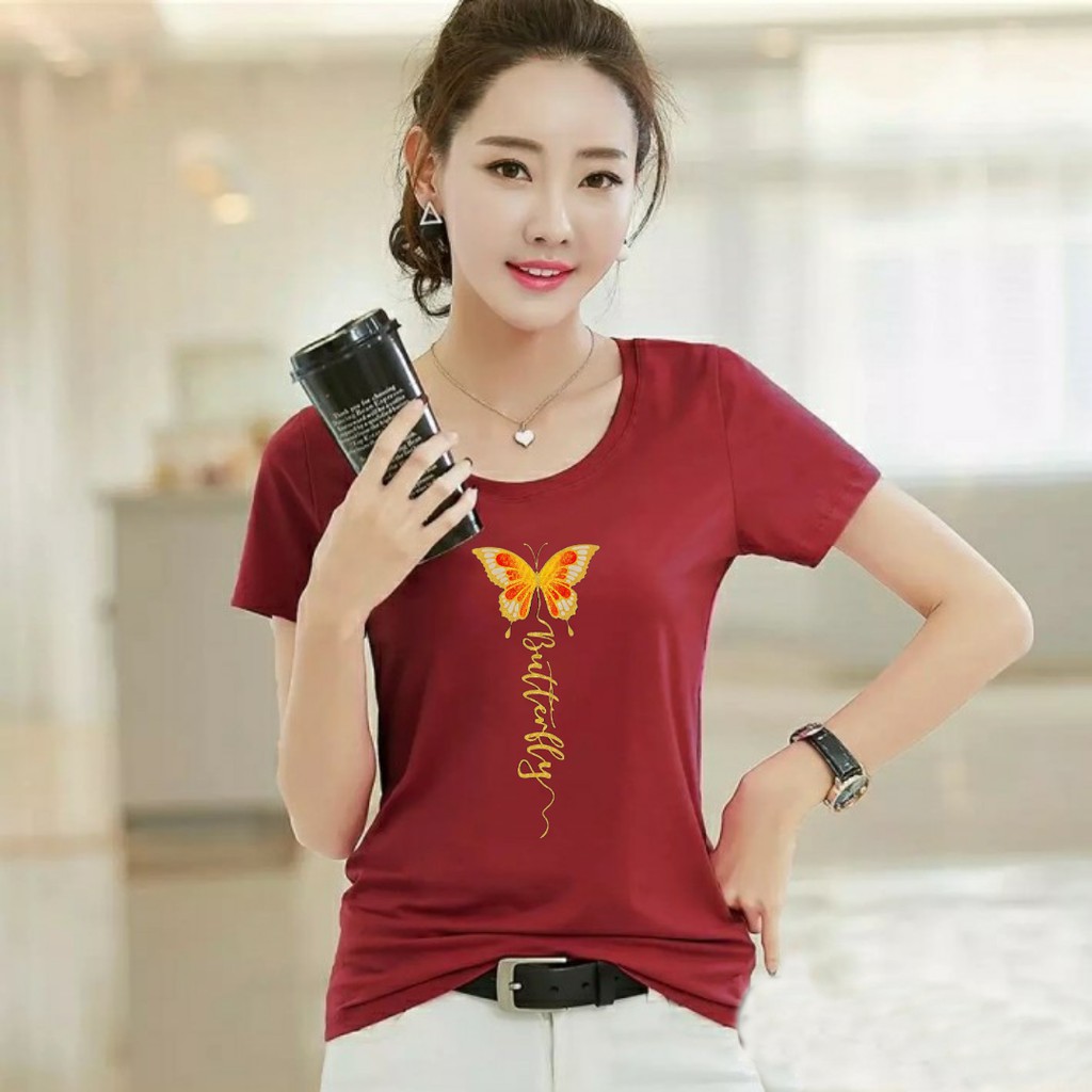 Vin9 Fashion Baju Kaos wanita Lengan Pendek Kekinian Remaja dan Dewasa Bahan Melar,Pakaian wanita Atasan TShirt Wanita Baju Kaos Cewek Dewasa,Remaja,Abg Tangan Pendek Terbaru Kekinian Murah Butterfly