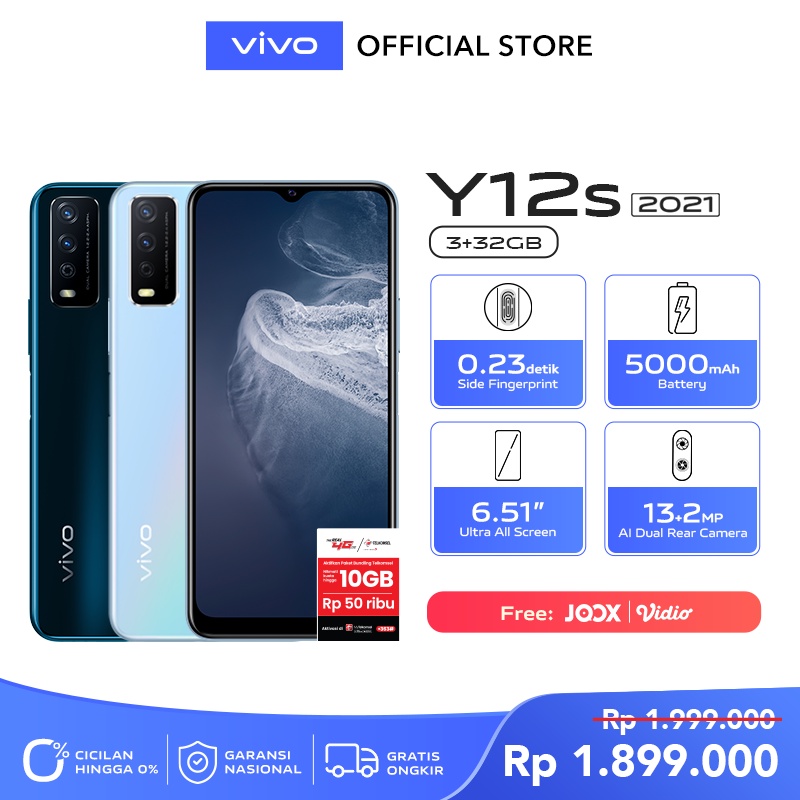Harga Vivo Y12s 2021 hp RAM 3G ROM 32GB promo asli 100%original baru, VIVO Y12 VIVO Y12s saat ini masih murah hanya Rp. 1.366.000,00, kita tidak akan pernah tahu tentang Harga ini di masa depan, juga stok barang ini nanti atau besok hari, bisa saja harganya naik tinggi atau bisa juga stok sudah Habis.