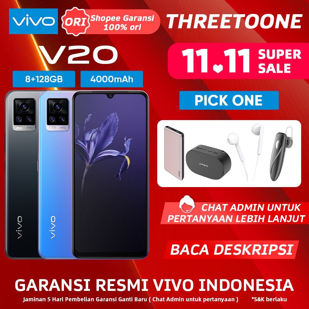 Produk Vivo V20 Ram 8gb Rom 128gb Qualcomm® Snapdragon™ 730 (V20 2021) 4000mAh (TYP) 6.44 inchi 64MP Super Night Selfie Garansi resmi Mendukung NFC ini harganya adalah Rp. 2.565.000,00 dan saat ini sedang Diskon 28%, Produk ini sendiri saat saya tulis Artikel ini sudah dilihat sebanyak 8090 kali dan sudah disukai sebanyak 961 kali.