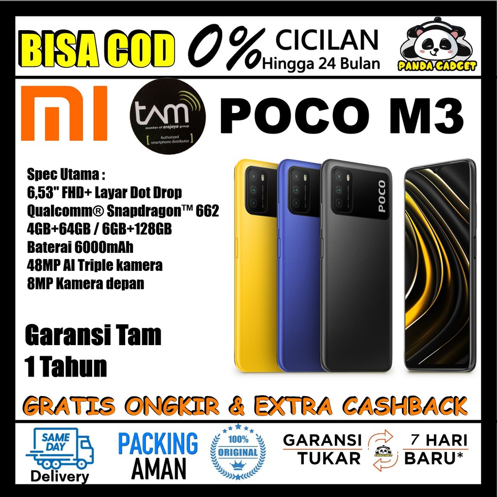 Original Xiaomi Poco M3 | 4/64GB 4 / 64 GB | 6/128GB 6 / 128 GB | Hitam Biru Kuning Pocophone m 3 Pro