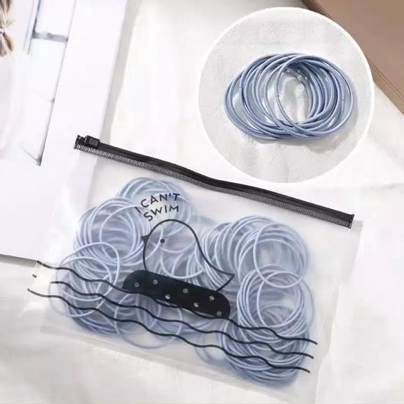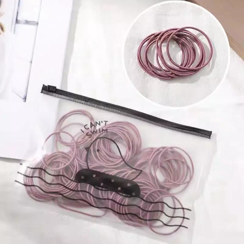 Kekurangan - Kekurangan membeli (COD) Isi 100PCS Karet Rambut Elastis 1SET Plus Pouch Korean Fashion / Ikat Rambut ❤️ MALL SHOPPING ❤ di Toko ini